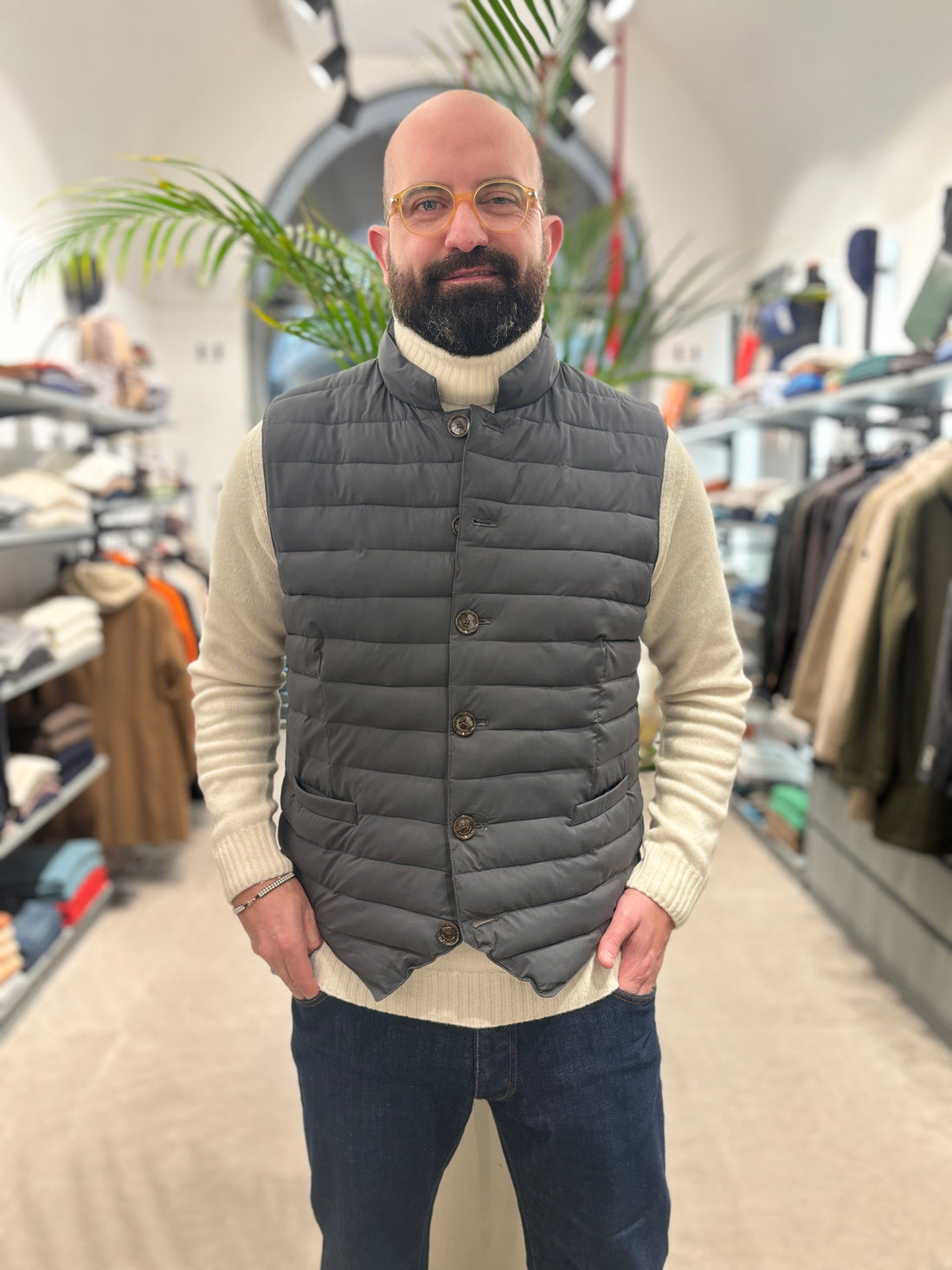 "Goditi il caldo e il comfort di ONTHEBUND con il nostro smanicato imbottito invernale blu....