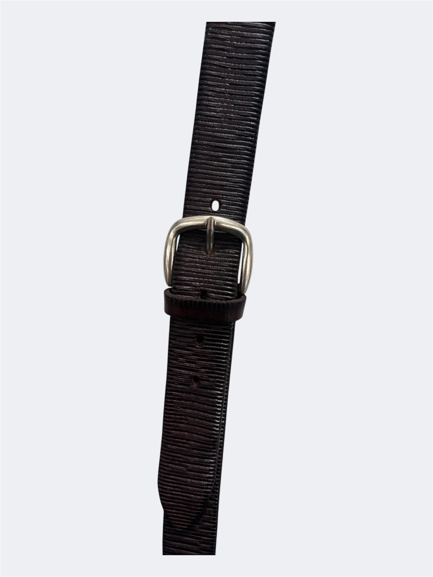 Cintura alta cm 3,5, in pelle testa di moro.Effetto laserato e fibbia con finitura argento.