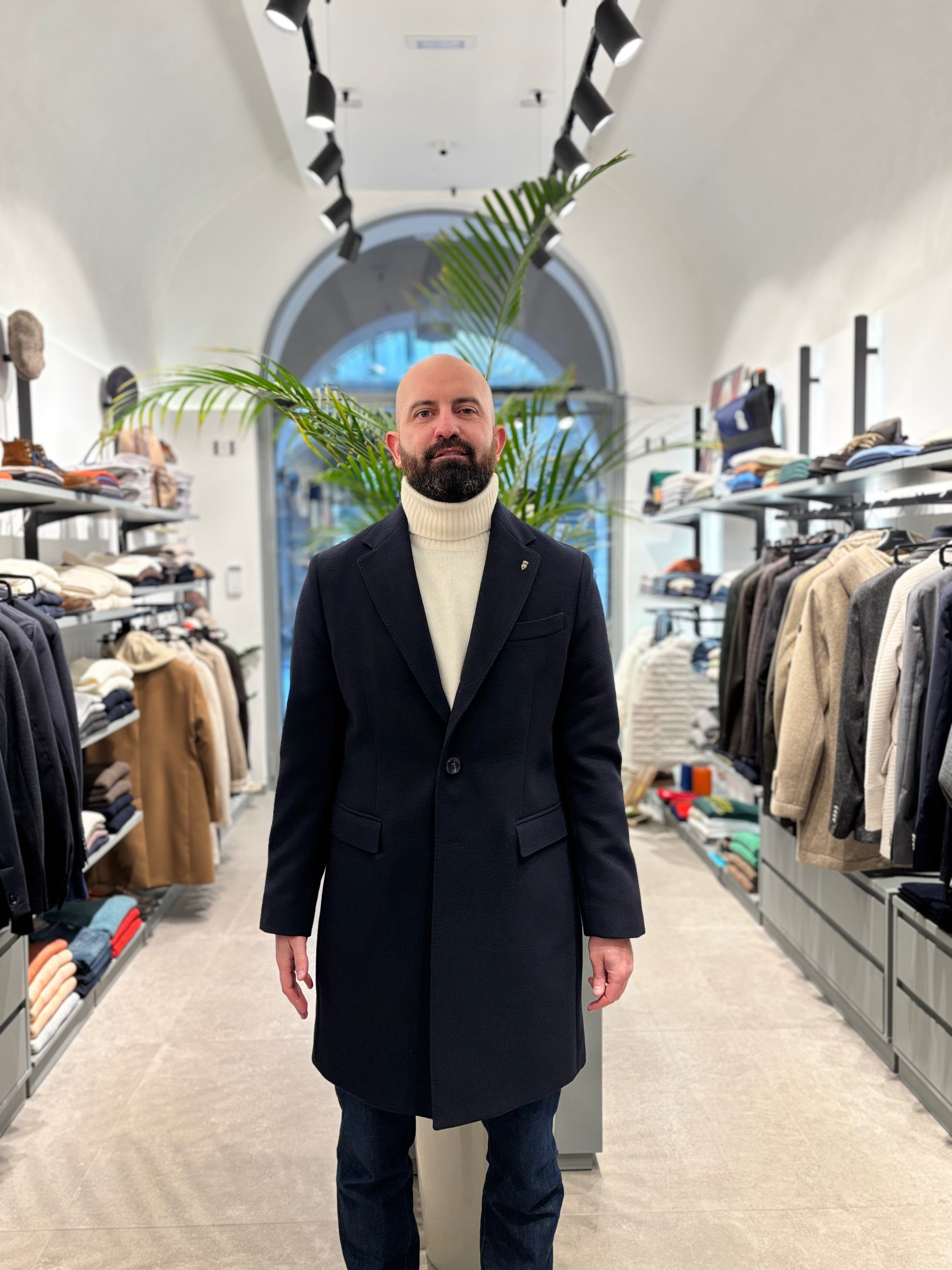 Capotto modello baronetto nel colore blu di Berry & Brian è un capo di abbigliamento elegante e versatile.Il design classico consente abbinamenti facili con diversi stili, rendendolo un elemento essenziale per il guardaroba maschile.