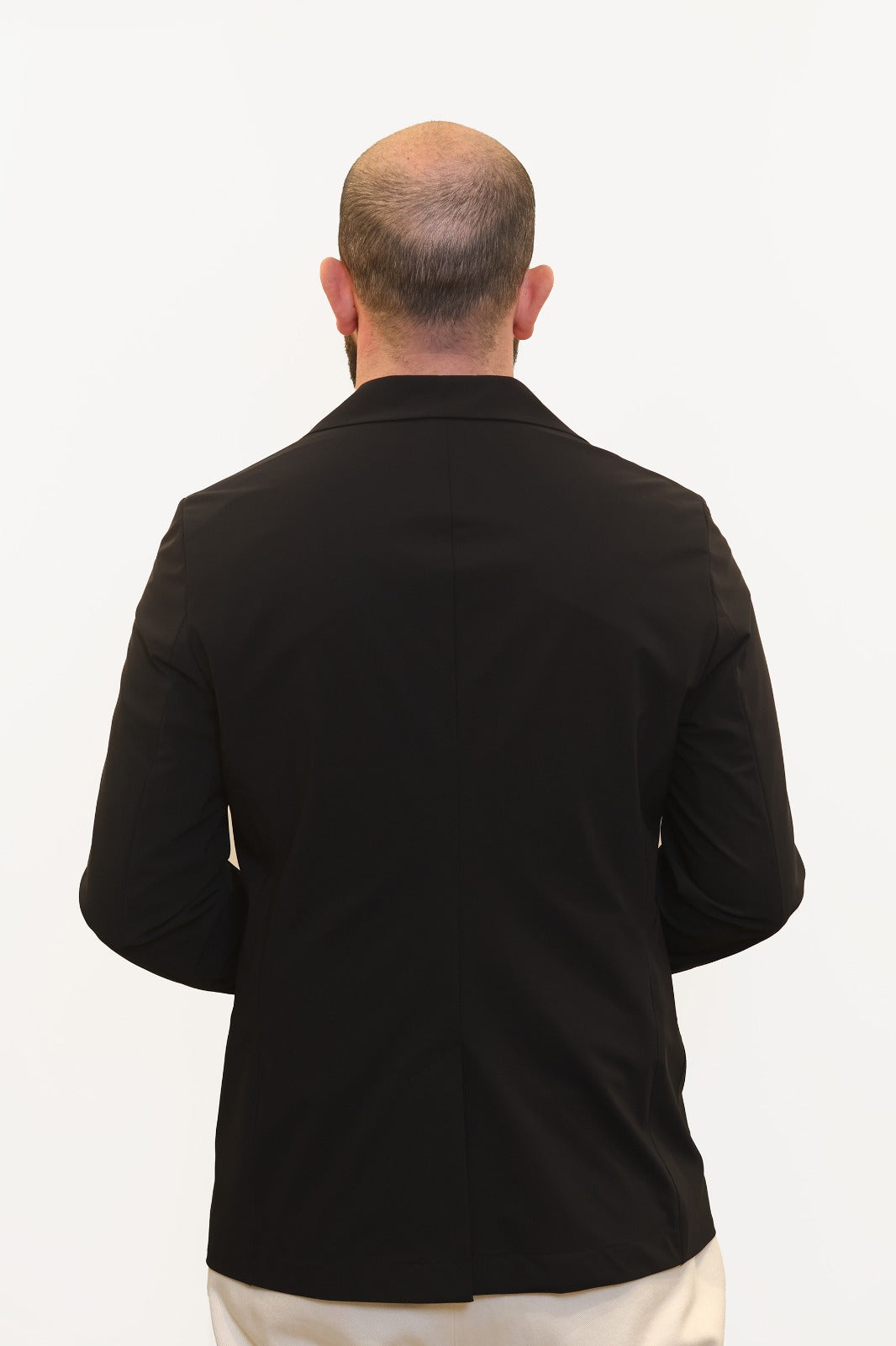 Giacca monopetto realizzata in tessuto tecnico super stretch "HP High Perform", che garantisce alte performance in termini di elasticità e comfort. Il capo presenta un’abbottonatura centrale con asole e bottoni, tasche frontali a toppa e taschino a pistagna sul petto.