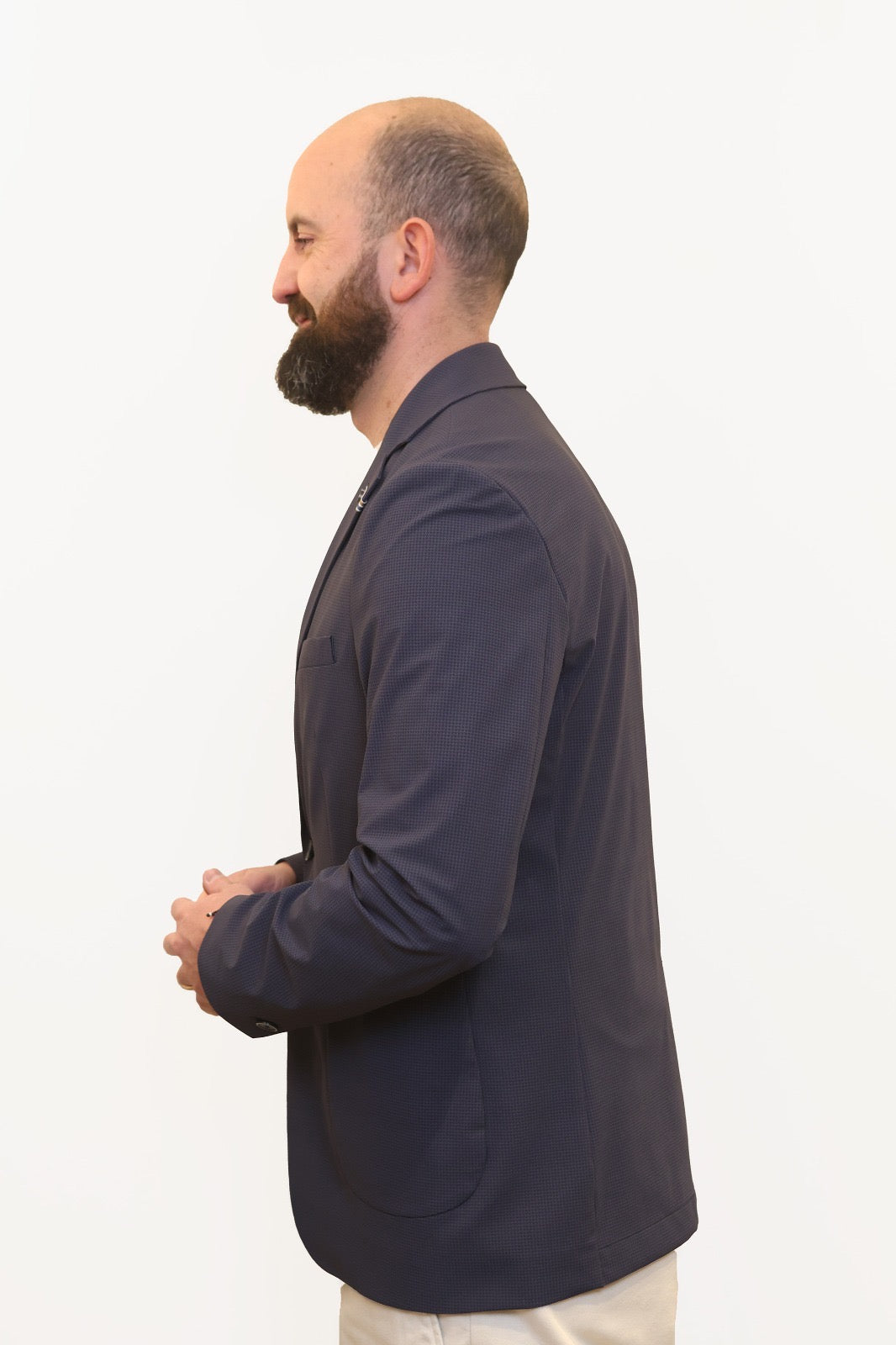 Giacca monopetto realizzata in tessuto tecnico super stretch "HP High Perform", che garantisce alte performance in termini di elasticità e comfort. Il capo presenta un’abbottonatura centrale con asole e bottoni, tasche frontali a toppa e taschino a pistagna sul petto.