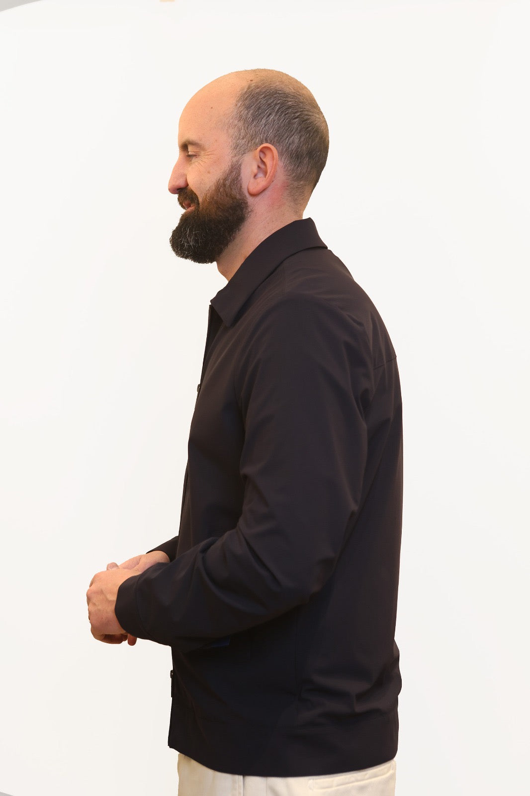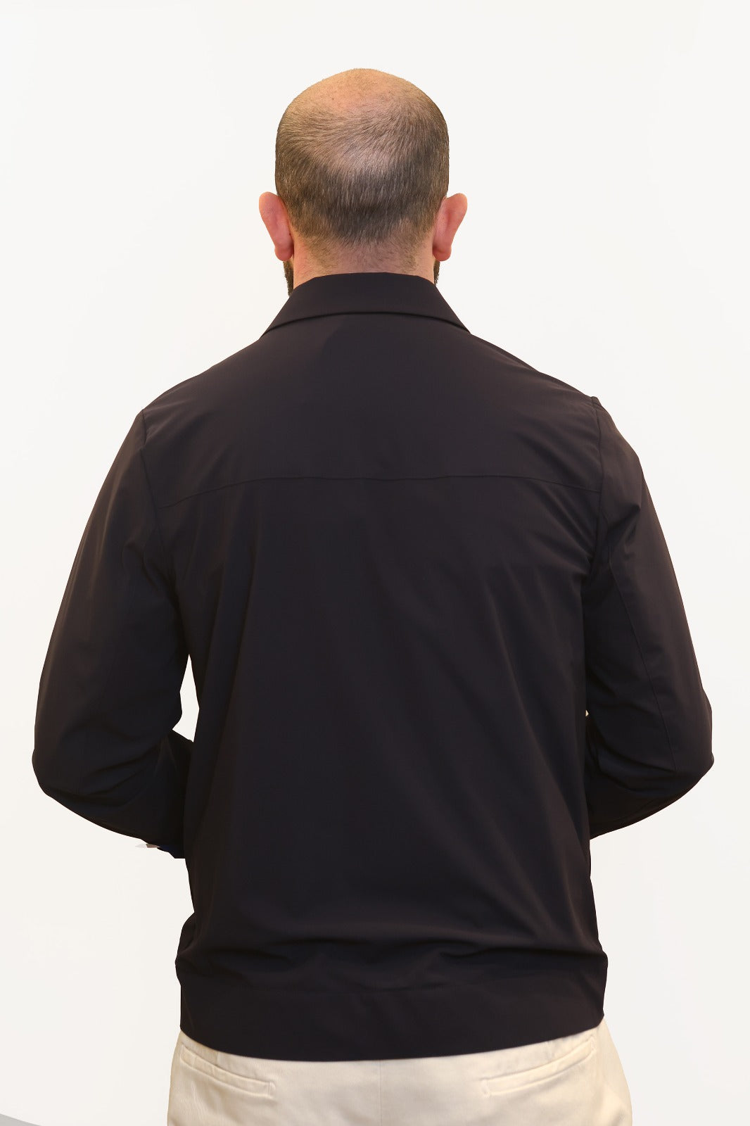 Giubbino modello aviatore realizzato in tessuto tecnico super stretch "HP High Perform", che garantisce alte performance in termini di elasticità e comfort. Il capo presenta un’abbottonatura centrale con asole e bottoni, tasche frontali a toppa e taschino a pistagna sul petto.
