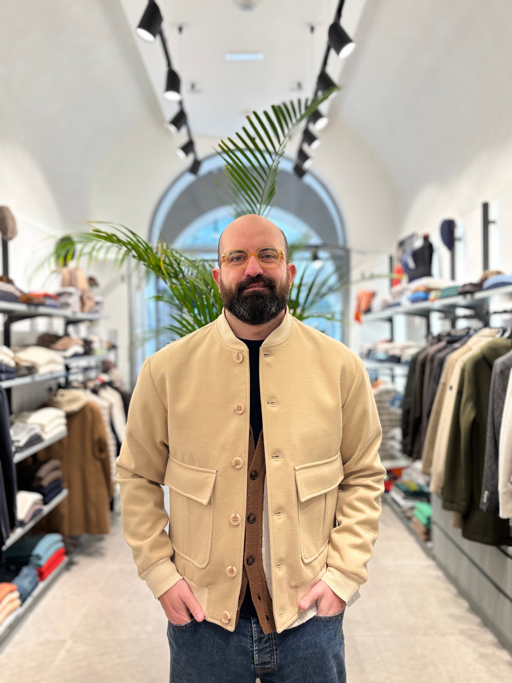 Giubbotto modello bomber di OFFICINA SARTORIALE in beige, tasche applicate. Design sartoriale per un look elegante e moderno. Tessuto resistente e tasche comode per tenere sempre con te ciò che ti serve. Aggiungi stile e funzionalità al tuo guardaroba con questo bomber.
