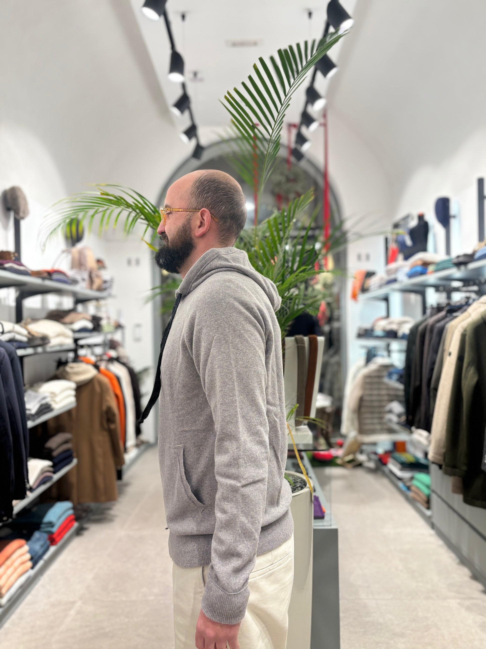RETOIS FELPA IN LANA CON ZIP E CAPPUCCIO GRIGIO